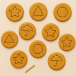 🍬 10 Dalgona Candies with a mix of Circle, Triangle, Star, and the iconic 456 Umbrella shapes — randomly picked and packed by the Squid Game guards at Krack Klub